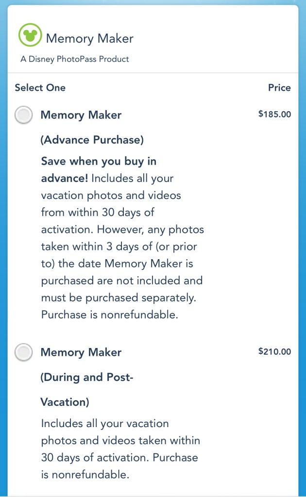 Memory Maker (compra durante o post viaje) – USD210 (antes USD 199)